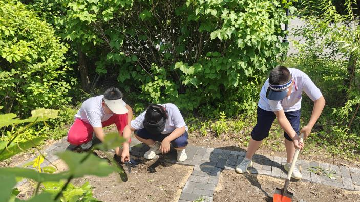 为深入践行生态文明理念,进一步将农耕种植融入小学生劳动教育之中。6月13日,学院青年志愿者赴东北师范大学附属实验学校(经开)小学部开展“共赴绿色之约,点亮成长微光”植物栽种活动。在东北师范大学附属实验学校(经开)小学部副校长吕丽与学院党委副书记邓鹏飞的带领下,两家单位共计四十余名师生参加了本次活动。