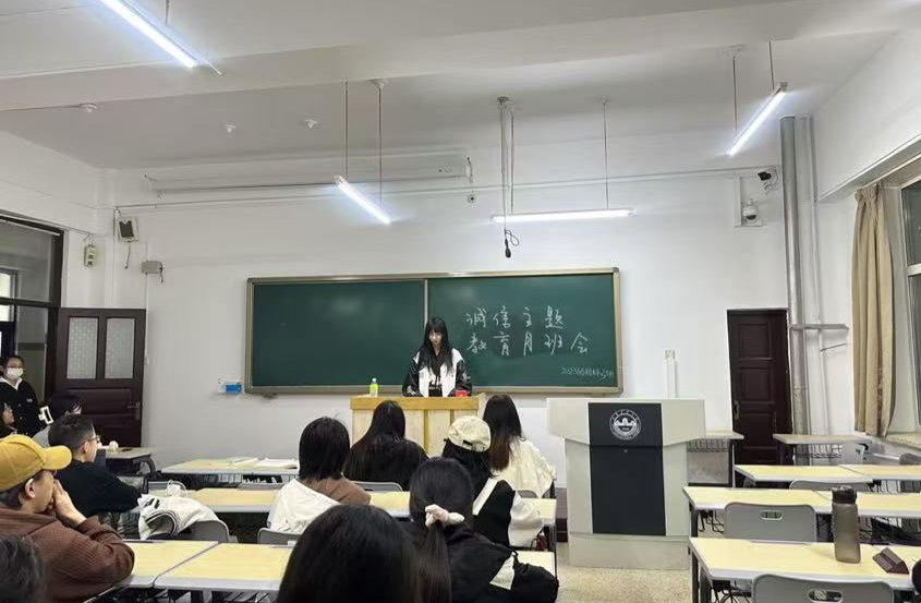 为激发青年学生对诚信的学习和理解,有效提高大家的诚实守信意识,活动月期间,学院学生工作办公室组织所有班级开展了形式多样的诚信教育主题班会。会上,各班级通过讲述诚信故事、分享失信案例、传递诚信理念等方式,学习诚信知识,提高诚信意识。