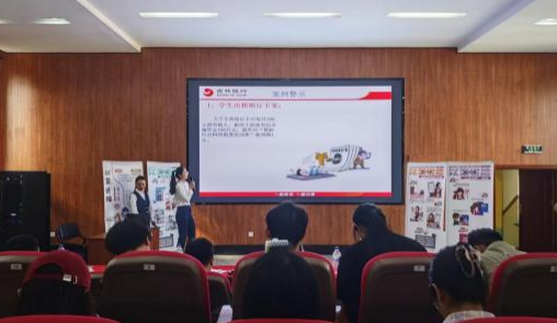 5月28日,学院联合吉林银行亚泰大街支行在第四阶梯教室举办"智慧金融开启青春征程"金融知识进校园活动。学院党委书记沈广会、党委副书记邓鹏飞、吉林银行亚泰大街支行副行长常晶及师生代表近120人参与了本次活动。活动以寓教于乐的形式,通过视频讲解、歌曲演绎、互动游戏等形式普及金融消保知识,将金融知识转化为师生易于接受的防骗本领,对有效提升金融反诈意识和自我保护能力起到了积极的促进作用。