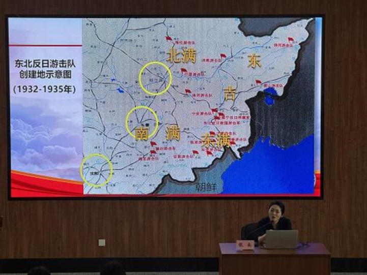 随后,张南老师以“大力弘扬东北抗联精神”为专题开展党课授课。她凭借深厚理论功底,以详实史料为支撑、生动案例为载体,从抗战实践中孕育的东北抗联精神、东北抗联精神的深刻内涵和传承东北抗联精神永葆初心使命三个方面,深刻阐释了“勇赴国难、自觉担当、顽强苦斗、舍生取义、团结御侮”为主要内涵的东北抗联精神。同时,她结合东北抗联精神进行内容延伸,向学员们讲述了如何才能成为一名优秀的中国共产党员。她号召青年学生要牢记历史、坚定信念,勇于创新、善于斗争,强化作风、敢于担当,努力成为堪当民族复兴重任的时代新人。
