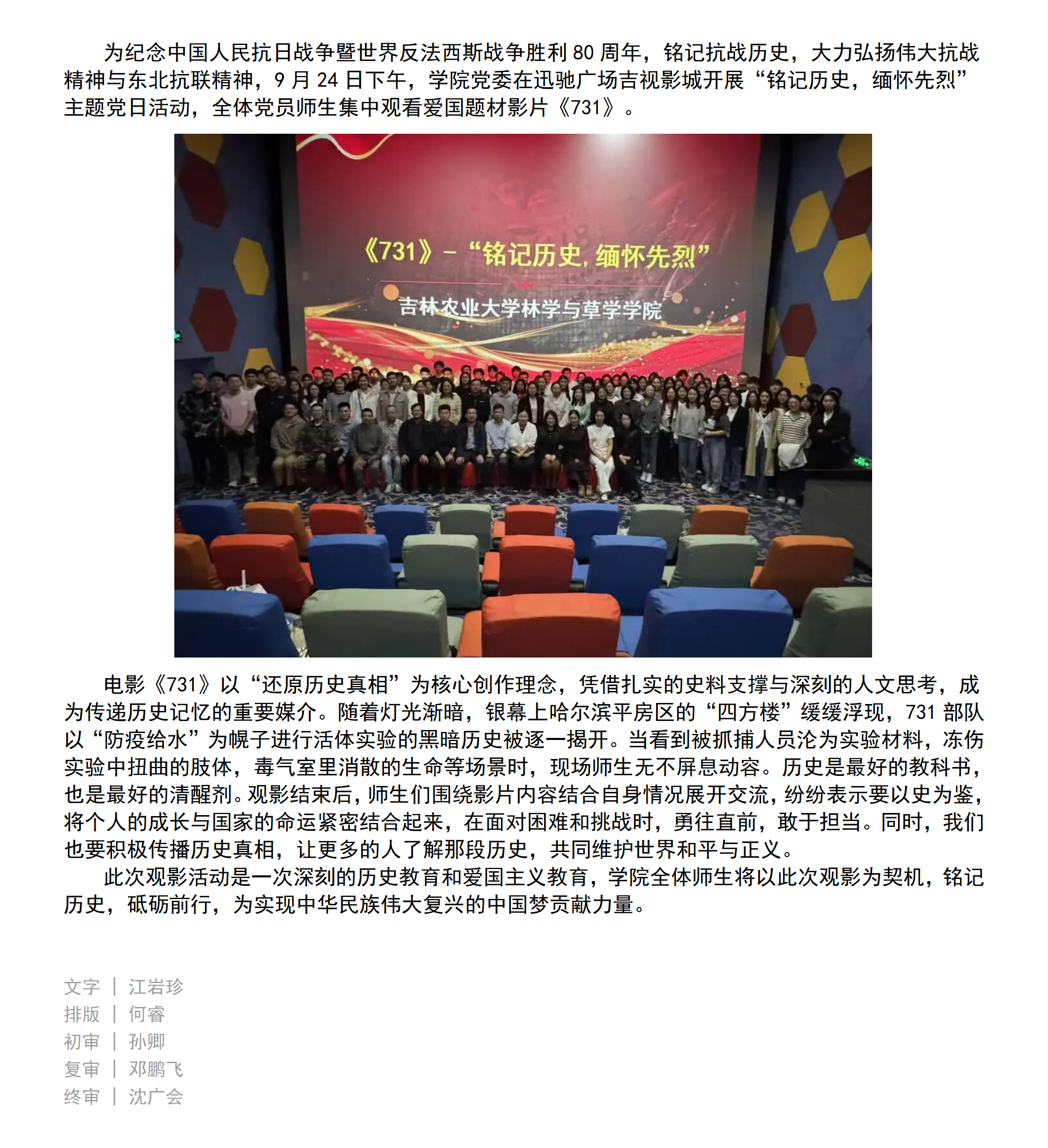 党日活动|学院党委组织师生党员开展《731》主题观影活动