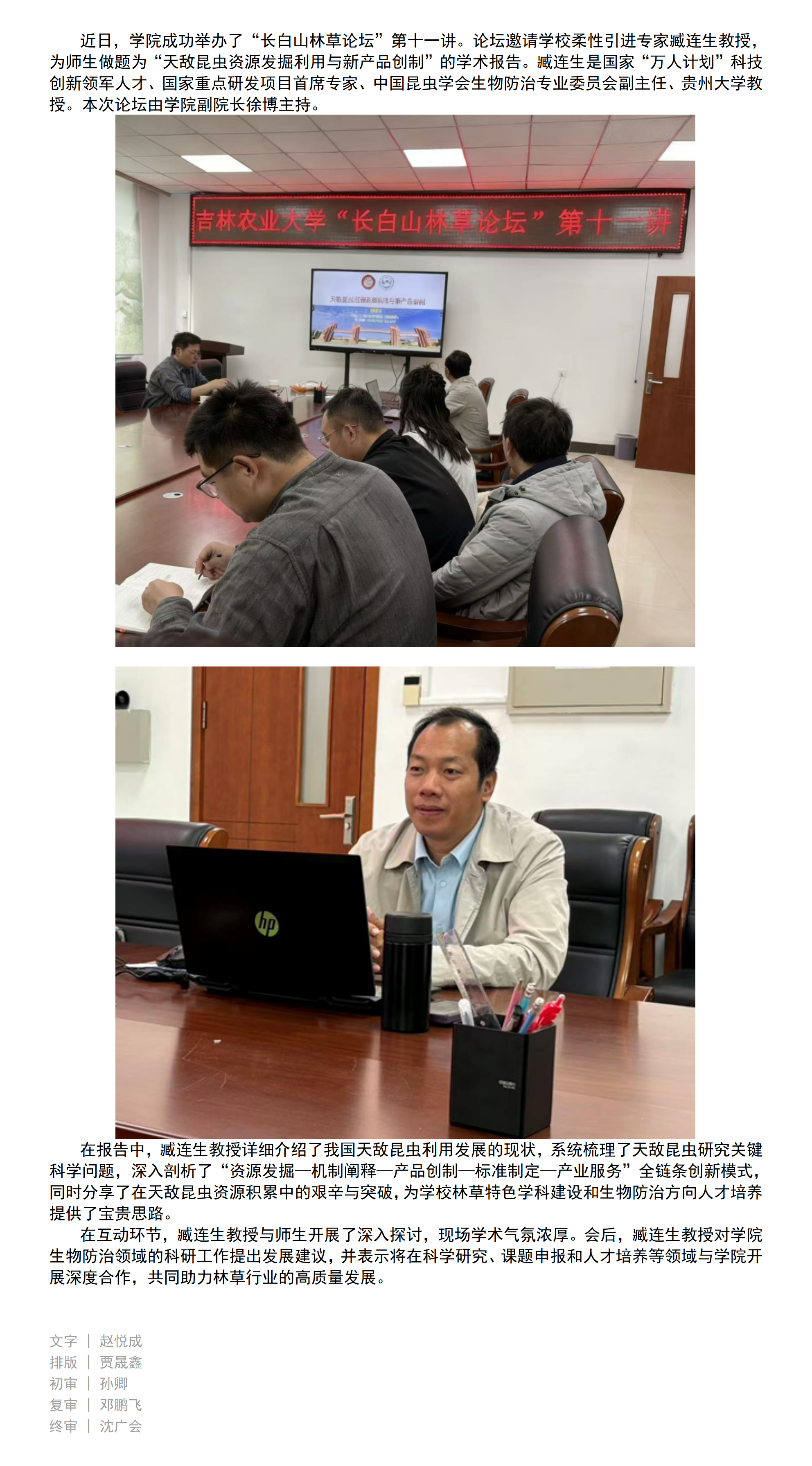 长白山林草论坛 | 吉林农业大学柔性引进专家臧连生教授为学院师生作学术报告