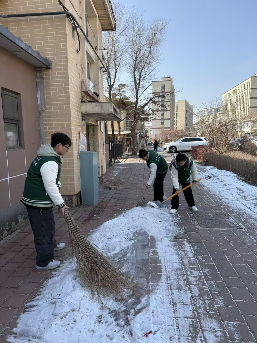本次志愿服务活动分校内、校外两个区域同步开展。在校内,志愿者们化身环保先锋,对学院周边及校园内乱停乱放的共享单车进行集中整理,并清理了甬路上的垃圾,以点滴行动为我们的学习和生活环境增添整洁之美,让校园风貌焕然一新。