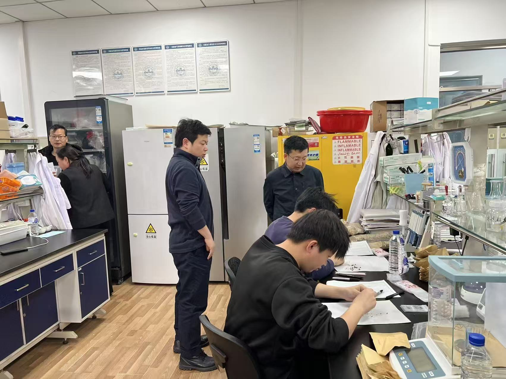 学院领导班子对实验室开展全覆盖安全检查。检查内容包括危险化学品储存管理、仪器设备运行维护及断电情况、消防器材有效性、应急通道畅通性、废弃物处理等方面。并嘱咐师生要在有计划开展实验任务的同时,严格落实安全管理制度,确保实验设备运转时有人看守,杜绝安全隐患。