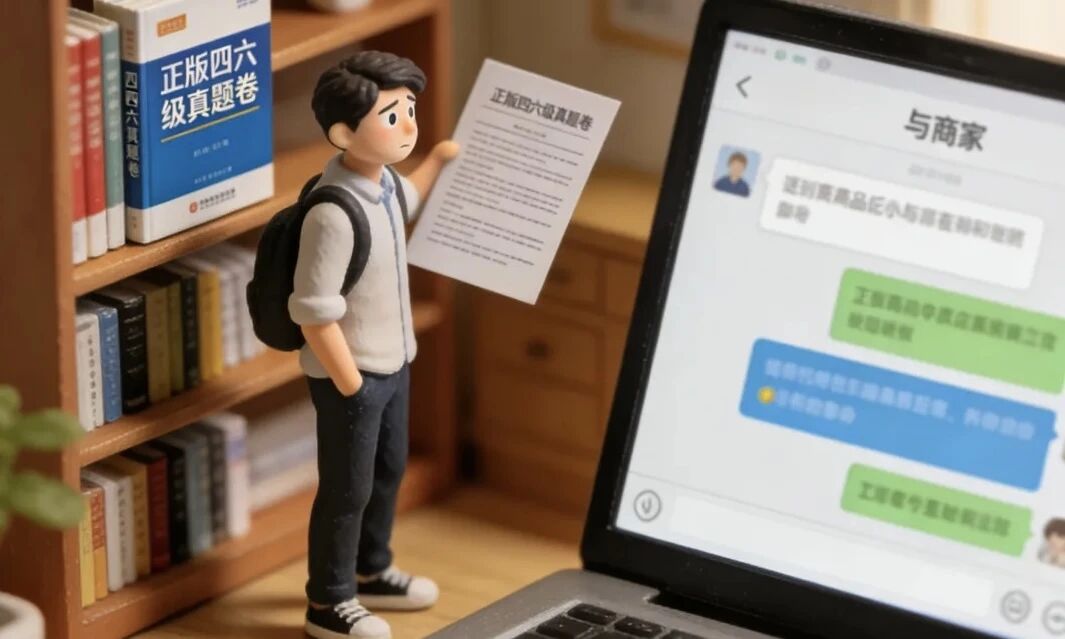 有同学在某平台购买“正版四六级真题卷”,收到后发现是影印盗版,答案印刷错误百出,商家拒绝承认问题,还拉黑了同学的账号。