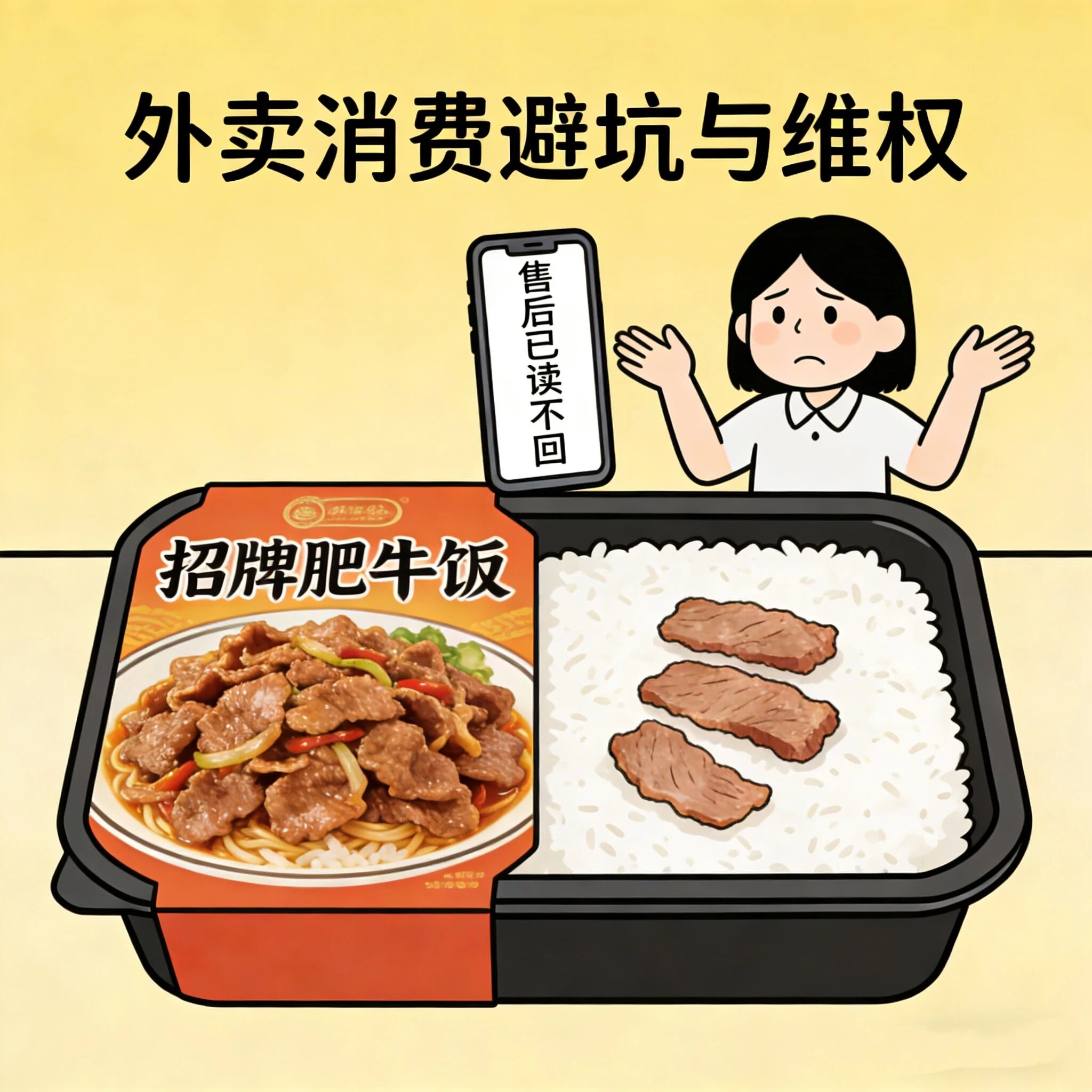 有同学点了一份招牌肥牛饭,商家宣传图里肥牛铺满碗面,实际收到后只有几片薄肥牛,其余全是米饭和廉价配菜,联系商家售后,对方已读不回。