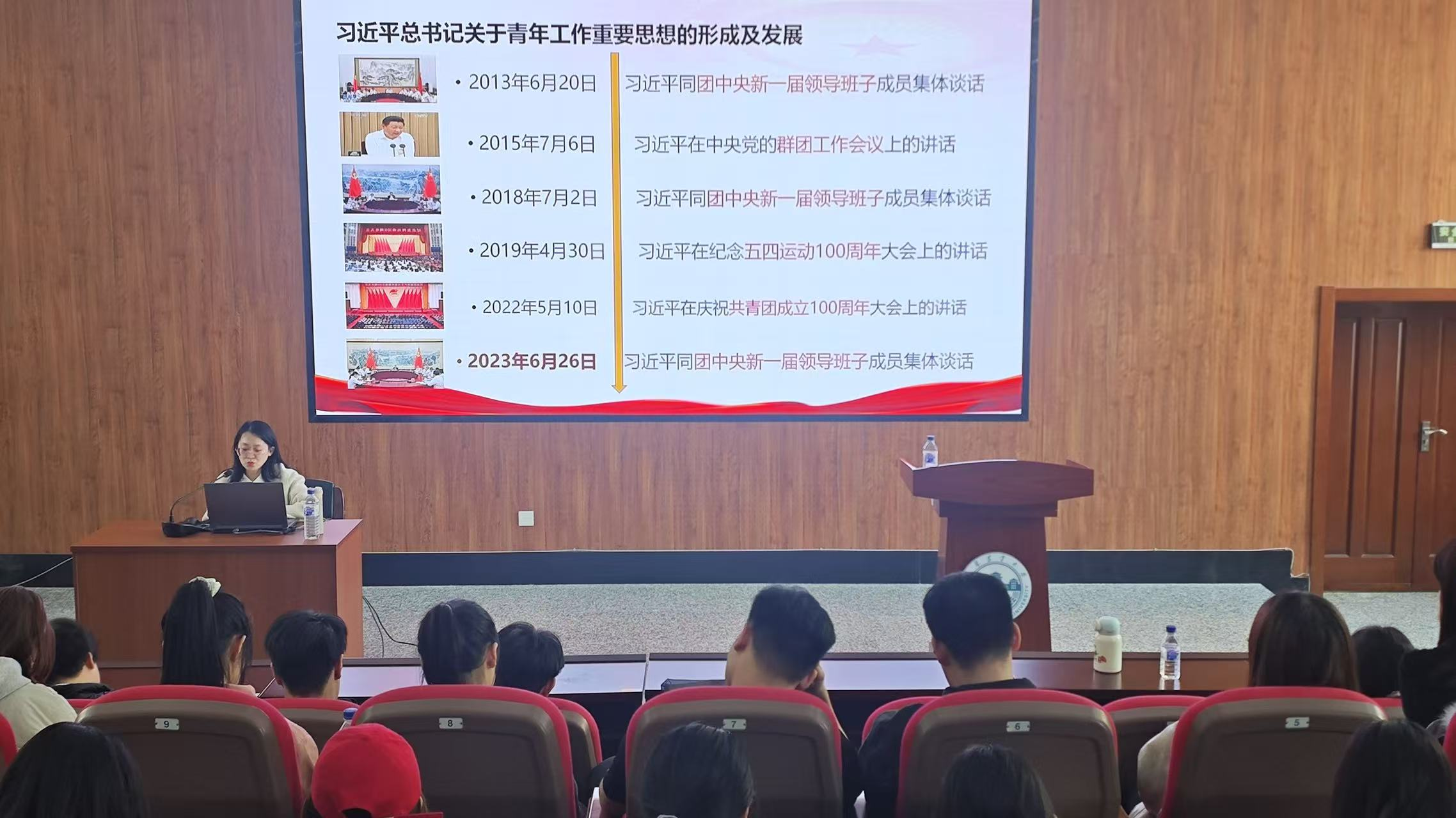 为深入学习贯彻习近平总书记关于青年工作的重要思想,引导青年学子坚定理想信念、勇担时代使命,3月25日,学院在学工楼第四阶梯教室举办2026年团校培训班,本次培训班由学工办杨侨老师主持,特邀省团校专家李春晓老师主讲,百余名新发展团员参加。