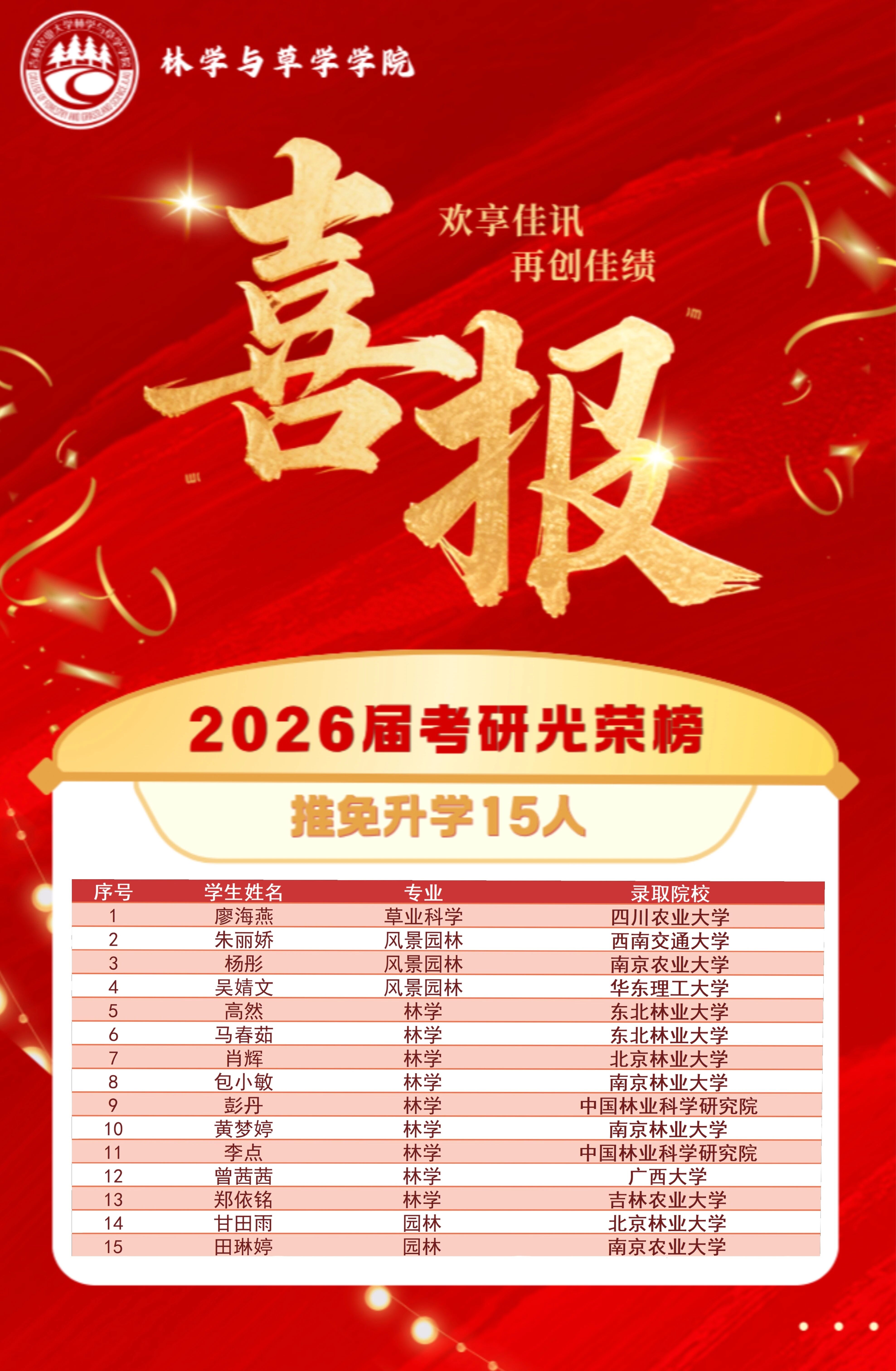 热烈祝贺每一位林草学子圆梦今朝!